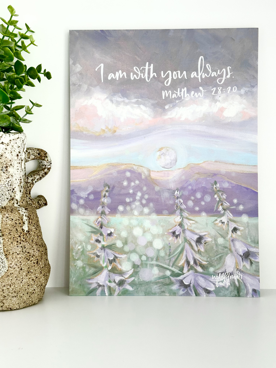 Originally designed, hand-painted and hand-lettered Art Print. Each print is created to bring sense of peace and purpose. Printed on the highest quality 300gsm silk paper, capturing the heart of every brushstroke and word. Whether you’re placing this in your home, gifting a friend, or creating a prayerful corner, this print is a meaningful reminder of His presence and faithfulness.